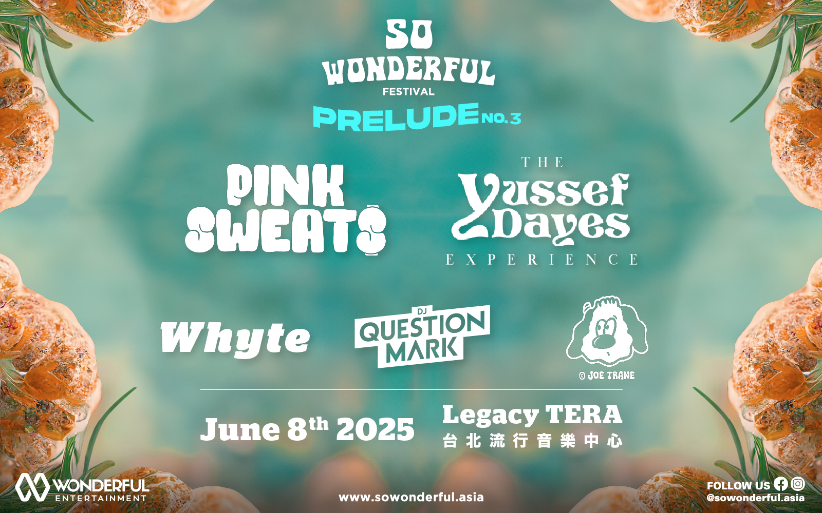 六月最美好的音樂盛會,怎能錯過 So Wonderful 的 The Prelude 音樂節!So Wonderful 今天正式宣布,今年的 The Prelude No.3 將於 6 月 8 日在北流 Legacy TERA 登場,準備迎接首度來台的美國 R&B 靈魂歌手 Pink Sweat$、南倫敦天才鼓手 Yussef Dayes、台灣爵士女聲 Whyte、跨界音樂玩家 DJ QuestionMark 以及來自台北的爵士派對體驗 爵犬 Joe Trane,五組風格獨具的演出者,卻都擅長以旋律與節奏直擊人心,將帶來一場跨越靈魂、律動與情感的演出。一次集結當代最有感的聲音,今年夏天的節奏,絕對不簡單!